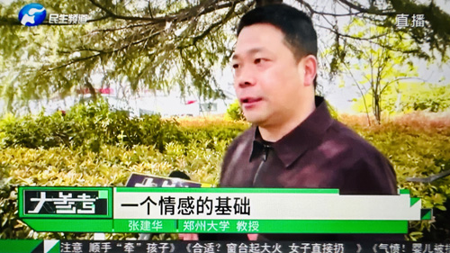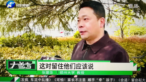 2023年4月1日上午,郑州大学张建华教授在盛和苑南门接受河南电视台大参考栏目记者采访,点评郑州推出的人才驿站措施。访谈于当晚在河南电视台民生频道大参考栏目中播出。