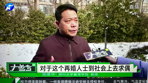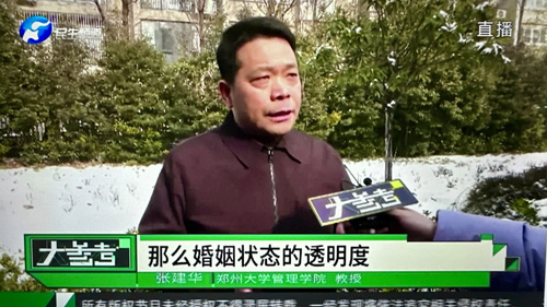 2024年1月20日,郑州大学张建华教授在河南电视台“大参考”栏目,点评户口本对婚姻状态的标识问题。
