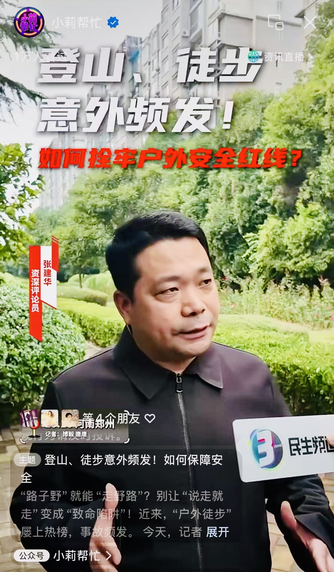 张建华教授作为特约评论员在河南电视台点评户外探险热背后的安全困局与治理之道(2025-10-16)