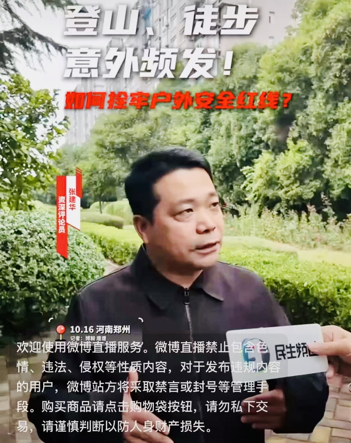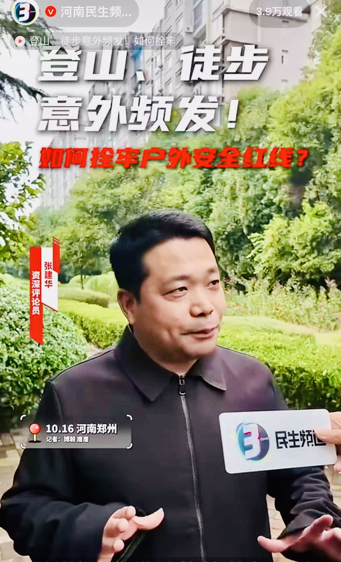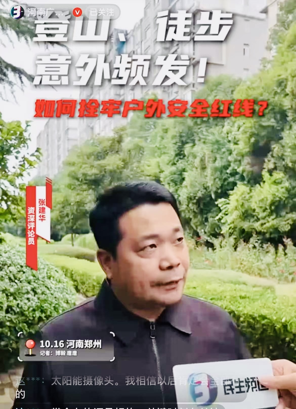2025年10月16日,张建华教授在河南电视台,点评户外探险热背后的安全困局与治理之道。