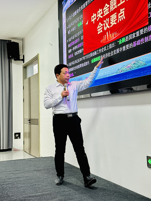 2025年11月14日下午,郑州大学张建华教授在三门峡为全市银行机构高管合规培训班,作题为《习近平总书记关于金融工作的重要论述》的专题讲座。讲座内容包括:时代背景、思想渊源、内容解读、重要意义等部分。