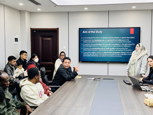2025年10月12日晚,张建华教授主持召开研究生(硕士&博士)2025-2026学年第一学期第二次学术交流会。会上,新入学的硕士生Umama首先进行了自我介绍;隶属于Batch 1的博士生Abbas、Tariq、Shanza、Notob、Azeez以及硕士生孙肖廷、敖雅丽做了学术汇报,博士生贾红雨、Philip没有按期汇报;张教授为博士生Terefe发了科研特别补助,而后做了有关学术研究规范与策略的演讲。会后,张教授继续解答了部分同学的研究问题。会前,孙若男同学有请假。