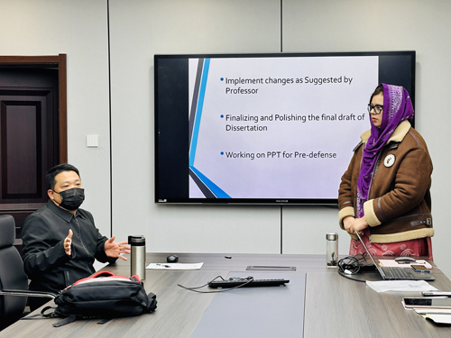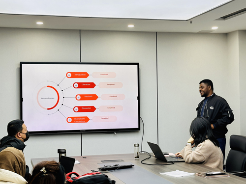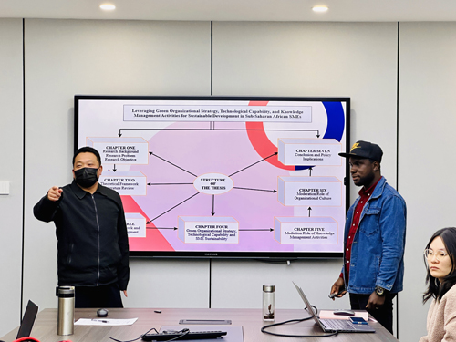 2025年11月30日晚,张建华教授主持召开研究生(硕士&博士)总第105次大人文交流暨2025-2026学年第一学期第6次学术交流会。会上,硕士生敖雅丽、石开轩与陈凯同学汇报了其学位论文开题准备工作,硕士生白嫣红同学做了总第105次大人文演讲;隶属于Batch 5的博士生Abbas、Tariq、贾红雨、Philip、Notob、Azeez以及硕士生孙肖廷做了学术汇报。会后,张教授继续解答了部分同学的研究问题。会前,高亚瑞、孙若男、Ibrahim、Noman同学有请假,Shazat与Marly无故旷会。