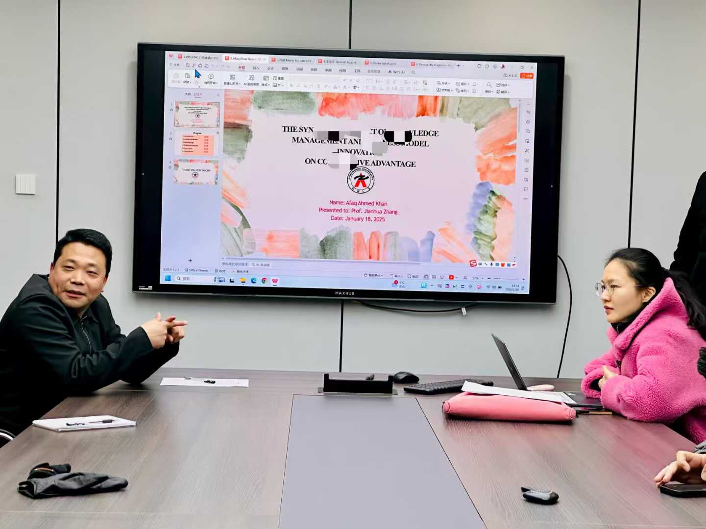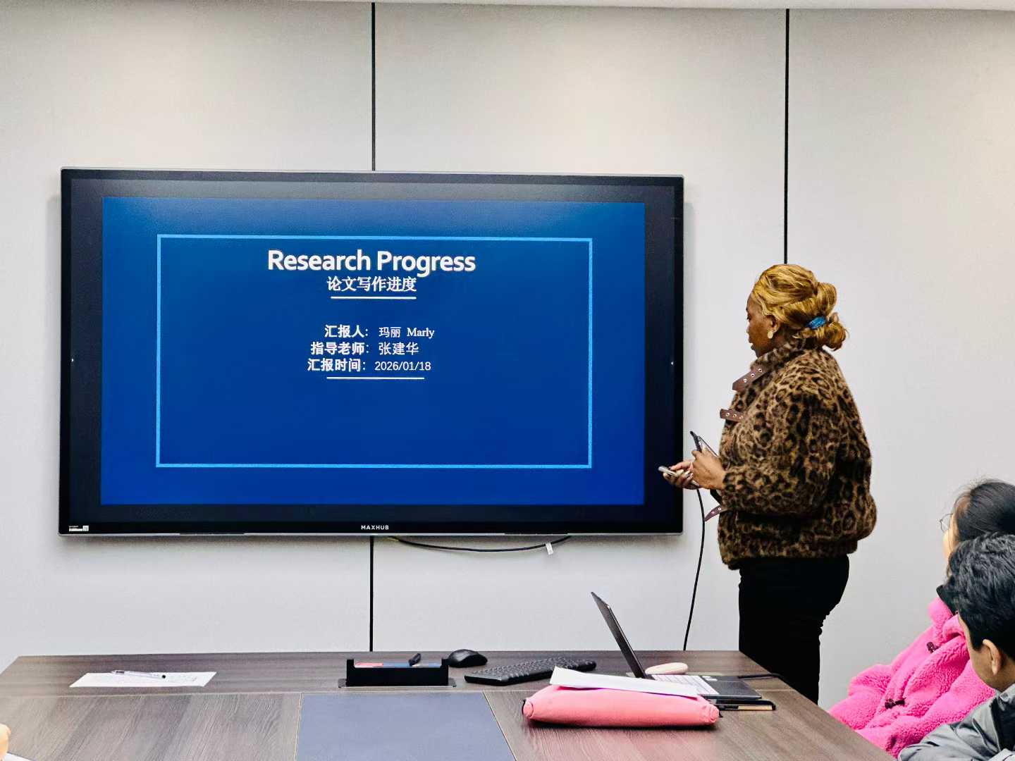 2026年1月18日晚,张建华教授主持召开研究生(硕士&博士)总第110次大人文交流暨2025-2026学年第一学期第12次学术交流会。会上,博士生Wegene/张豪同学做了有关埃塞俄比亚国情的大人文演讲;隶属于Batch 3的博士生Afaq、Marly、Iqbal、Ibrahim以及硕士生王成宇做了学术汇报。会后,张教授继续解答了部分同学的研究问题。会前,高亚瑞、Nahian、Shanza、石开轩同学有请假,Tariq、Yasir、Tufail、Farrah、Terefe、Rabia回国,Wasaf无故旷会。
