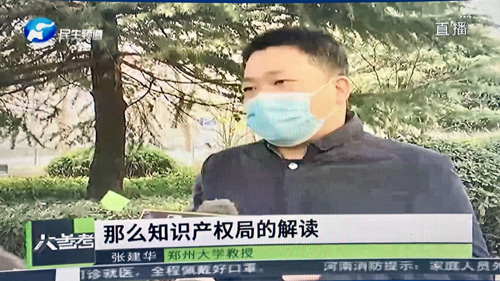 2021年11月26日晚,郑州大学张建华教授在河南电视台民生频道大参考栏目,对国家知识产权局回应商标维权事件进行点评。