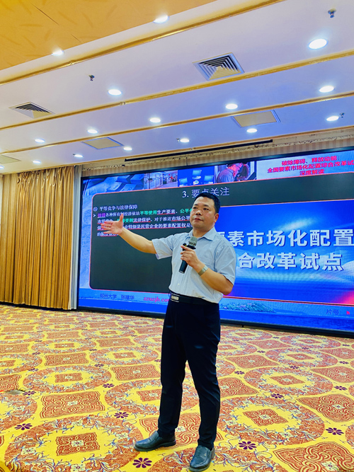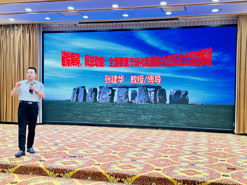 2025年9月28日上午,郑州大学张建华教授应郑州市企业联合会-企业家协会-工业经济联合会之邀,在嵩阳饭店为企业家朋友们作题为《破除障碍、释放动能:要素市场化配置综合改革试点深度解读》的专题讲座。讲座的主要内容包括:源起、背景回顾、重要意义、要点关注、难点与挑战以及策略与建议等6个部分。