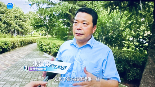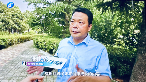 2024年9月10日,郑州大学张建华教授在河南电视台,点评不良AI产品对未成年人健康成长的影响。