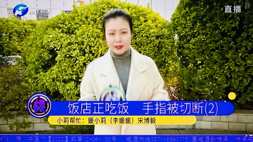 张建华教授在盛和苑南门接受河南电视台“小莉帮忙”栏目记者采访,点评“顾客在饭店吃饭,手指被切断”事件(2023-11-20)